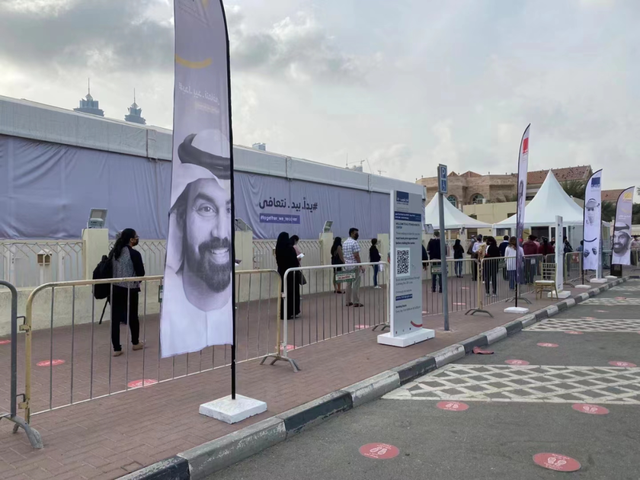 2021年,亚婷在阿联酋排队打第二针疫苗