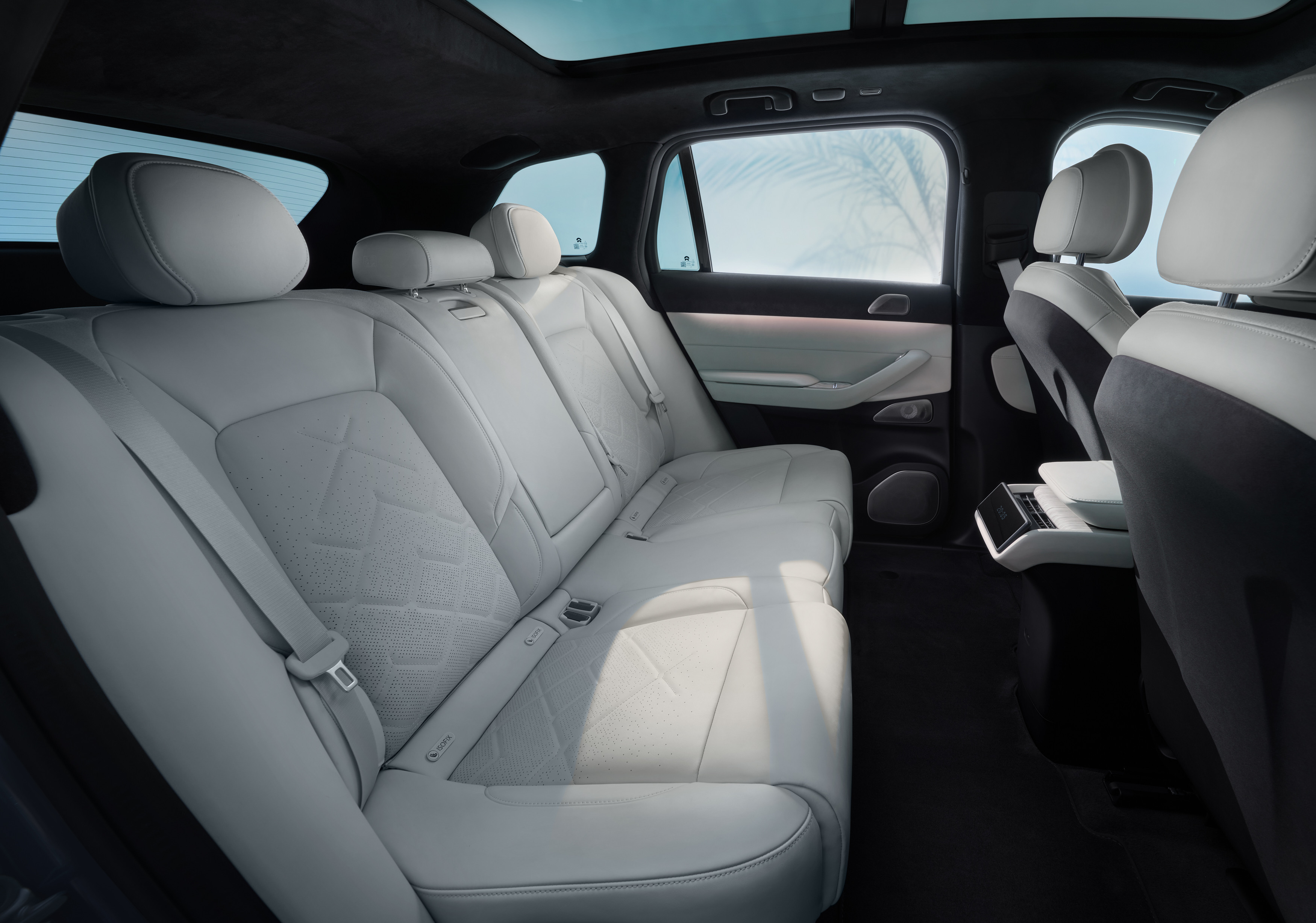 该车采用大五座布局,前排标配女王副驾,后排座椅靠背支持23°—31°无极电动调节。同时, 搭载杜比全景声以及7.1.4沉浸声音响系统、256色光瀑式氛围灯以及AR/VR虚拟现实,打造PanoCinema沉浸式智能座舱体验。