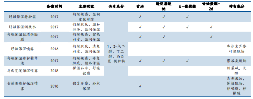 从营收上看,舒敏定位的核心单品份额尚不足20%,能否扛打,有待于观察。从产品功效成分迭代速度和成分上看,差异化并不明显。