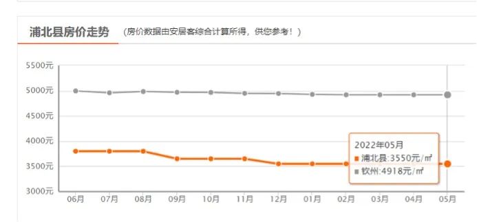 根据安居客数据,南宁市2015年房屋均价为8435.92元/平方米,2021年为12586.58元。五年间,房屋均价增长4150.55元。同一个时间段,浦北县的房屋均价仅增长了467元。
