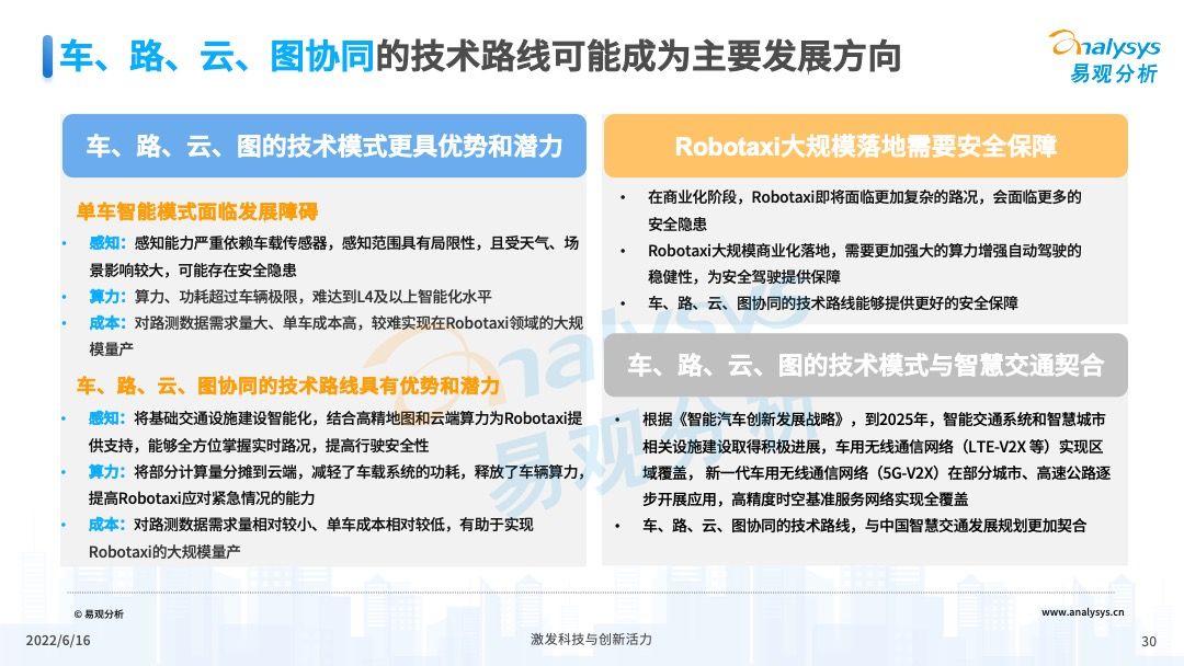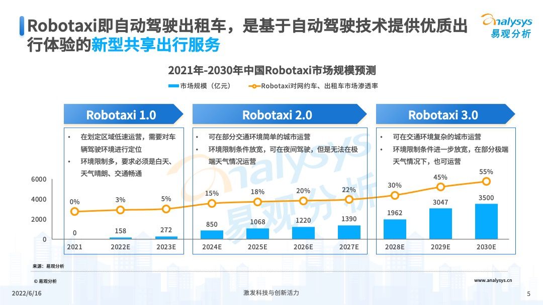 图片来源@视觉中国文 | 易观分析本报告将分为行业发展概况、行业竞争情况分析、 典型厂商分析、发展趋势预测四个部分,从行业、市场竞争、主要玩家、发展趋势四个方面展开研究,梳理行业发展趋势、市场需求、商业模式、盈利模式、技术能力、运营实力和典型厂商,报告将结合市场需求和典型厂商模式分析预测行业发展趋势,为Robotaxi行业发展提供结论性研究成果。