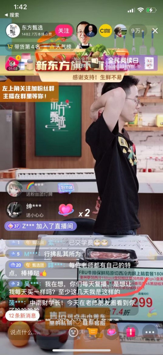 此前在播出牛排的直播中,有网友直接在直播间留言:你们每天复播,是想让我每天买一样吗?