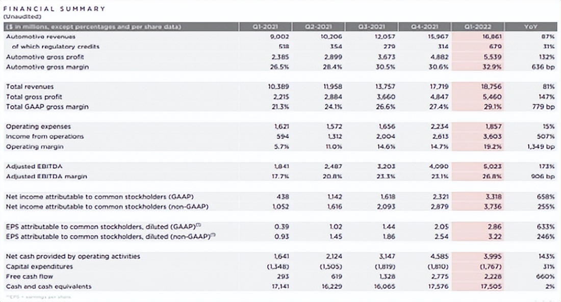 从线上商城可以看到,目前部分车型的新订单交付时间已拉长至6-12个月。因此,特斯拉不得不尝试预测从现在起 6 到 12 个月后生产这些车辆的前后的成本增长,或者特斯拉可能只是想提高其毛利率。特斯拉今年一季度总营收为187.56亿美元,较上年同期的103.89亿美元增长81%;毛利率为33%。