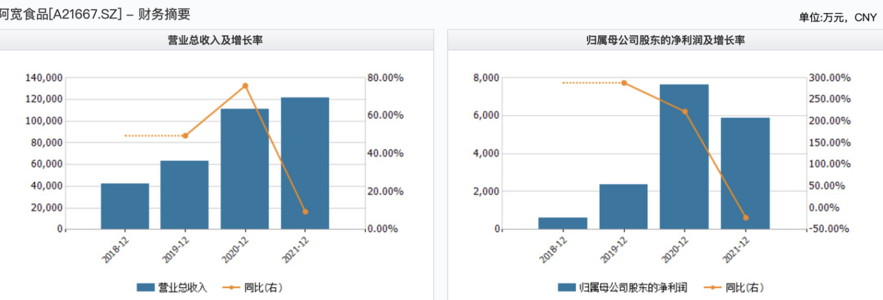 (阿宽食品业绩变动情况,来源:wind)