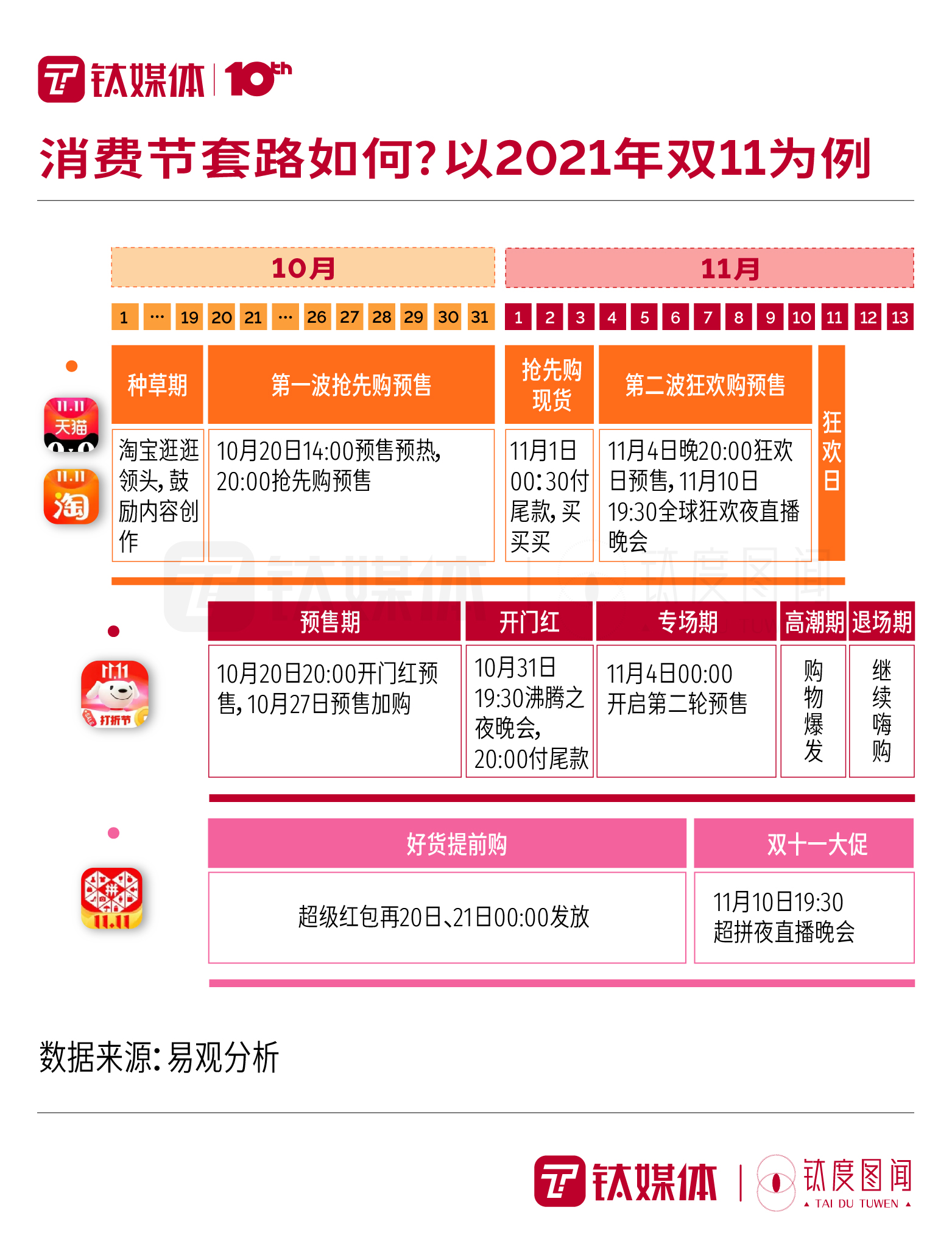 钛媒体·钛度图闻梳理了十五年电商造节变化,消费节“套路”究竟发生了何种转变?如此赚钱的消费节到底有没有“护城河”?这个市场还能“热”多久?