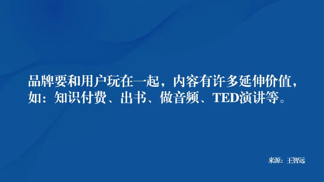 早期品牌靠商品支撑,想要生命力更长那对商品提出的唯一要求是做出兴趣和文化内容,例如,哈雷机车俱乐部、跑车发烧友、蔚来车友会等延展生命力。