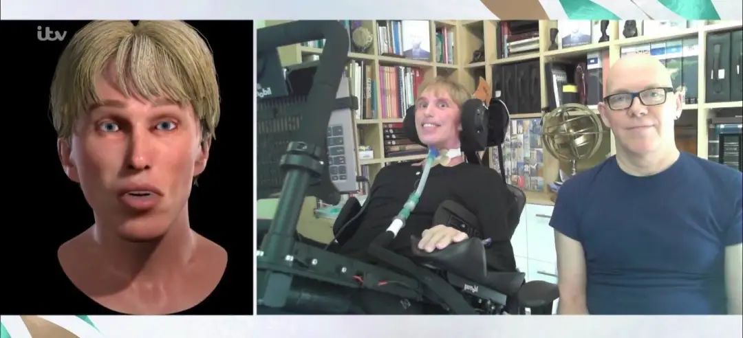 他在身上接入了 4 根管子,分别用于进食、呼吸和排泄。眼动追踪设备和霍金同款的 AI 软件,帮助他顺畅地表达想法。他的文字想法会快速转为语音,由合成声音进行讲述;同一时间,彼得的虚拟化身会根据语音内容,做出唇形变化、节奏停顿和摇头晃脑等动作。