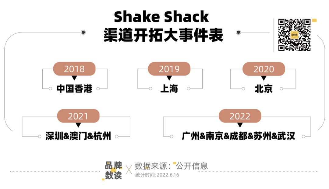 近期,Shake Shack官宣即将进入苏州、武汉两地,而自2019年入沪、2020年进京后,Shake Shack从2021年至今已先后进入深圳、澳门、杭州、广州、南京、成都等多个城市,这也意味着Shake Shack已经初步完成了包括华东、华北、华南、西南及华中在内的核心地区布局。