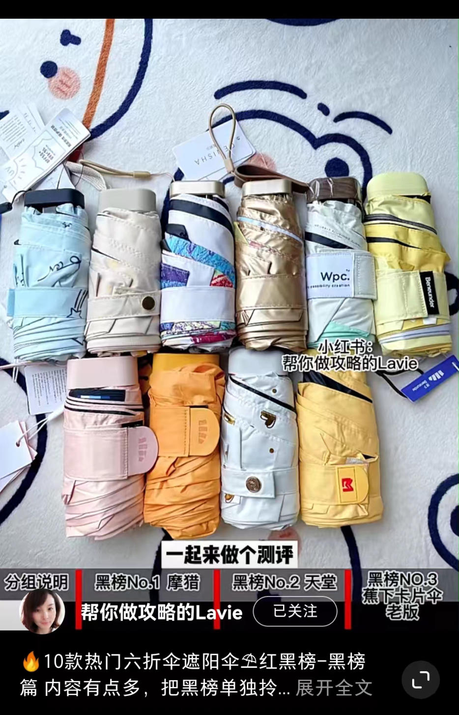 今年5月,Lavie做过“10款热门六折伞红黑榜”的测试,测试品牌包括蕉下、天堂、摩猎、Easily等在内的10款产品,其中包括蕉下去年上市的一款不带黑胶涂层的卡片伞。
