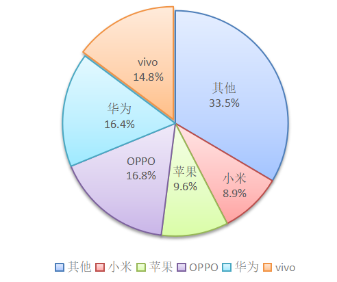 (由新眸绘制)图:2016年中国智能手机市场国产品牌份额