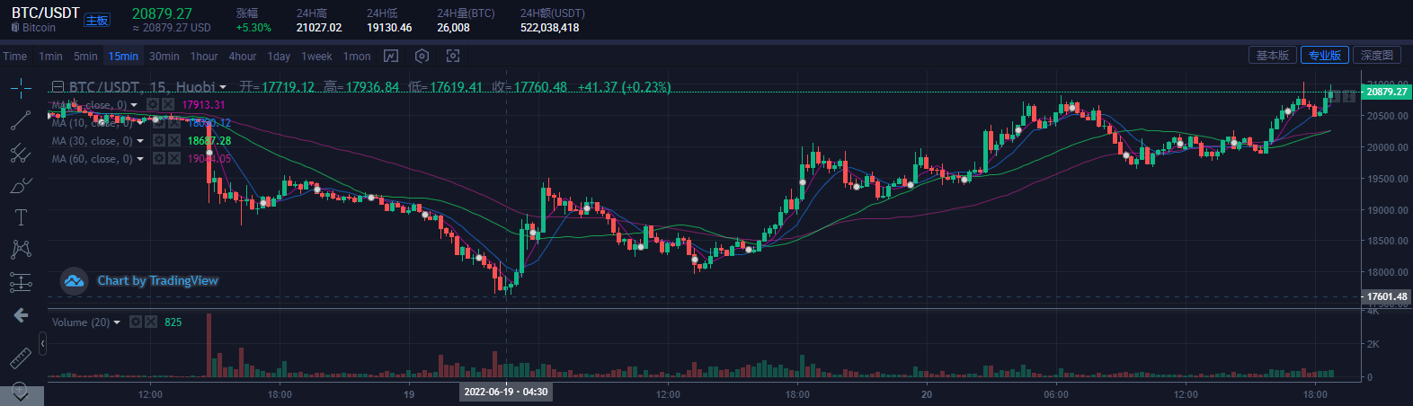 6月18日,比特币终于突破了20000美元的防线,直接将价格下探到18000美元线,次日,比特币继续下探,一度跌破18000美元下探到17601美元,这是继2020年12月矿潮开始后比特币的最低价格。