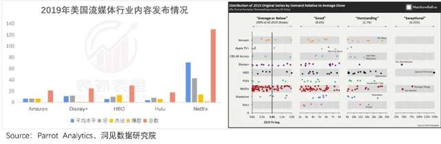 之所以会如此,原因在于奈飞每年产出的内容数,是HBO的好几倍。比如,2019年奈飞产出130部,HBO为30部。