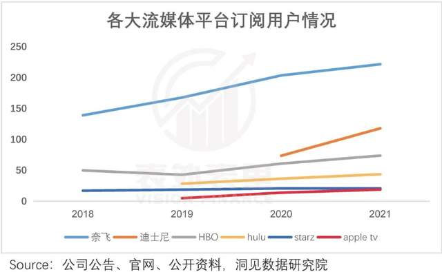 至少,收入上表现更好。如下图,走组合策略的奈飞,不仅在订阅用户规模上,整体远大于走精品的HBO,以及聚焦中腰部的Hulu;且增长情况,也同样排在最高。