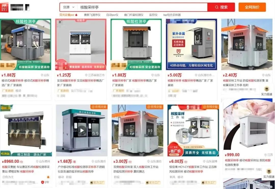 图/“爱采购”网站上核酸采样亭相关商品
