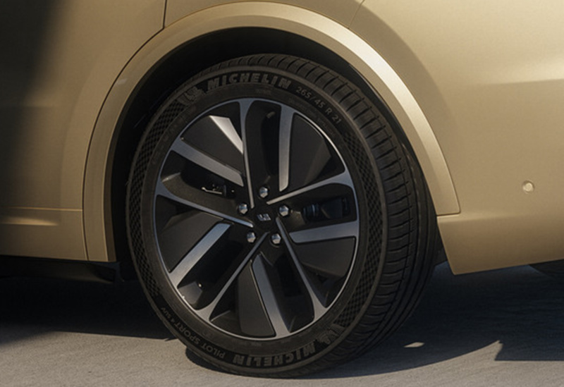 理想L9提供多种车身颜色可选,值得一说的是增加了紫色和金色两种颜色,而取消了白色。此外,理想L9还采用了全新样式的轮毂,搭配米其林Pilot Sport 4 SUV轮胎,尺寸为265/45 R21,视觉效果颇具质感。