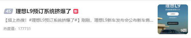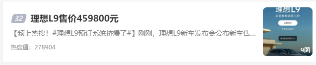 6月22日一大早,理想汽车喜提两个热搜。#理想L9售价459800元 #理想L9预订系统挤爆了。