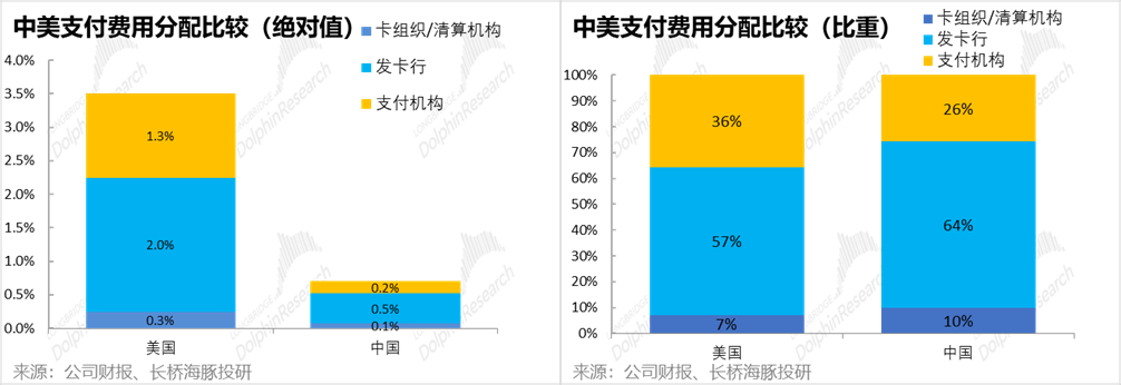 对比中国来看,由于国内监管更多将支付视作一种基础服务而非商业盈利行为,因此国内总的支付费率一般在~0.68%,剔除银行和清算机构的分佣后,收单方收取的净费用率约在~0.2%。![]()