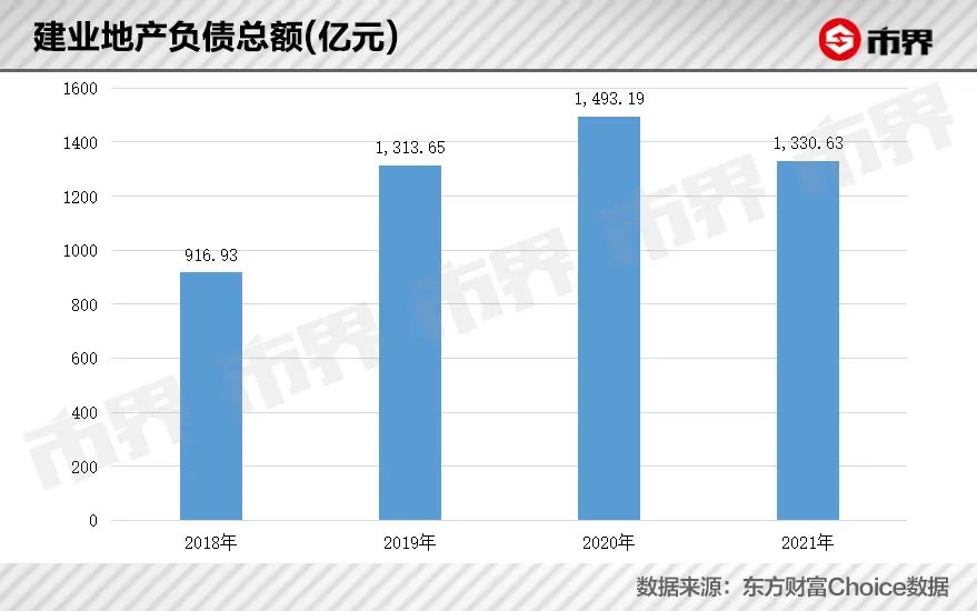 截至2021年末,公司的货币资金已经较2020年末的226亿元骤减73%,至59亿元,其中受限制资金39亿元。与此同时公司的总负债虽然从2020年的1493亿元减少至2021年底的1330亿元,但资产负债率仍处在“红线”之上,高达91.1%。