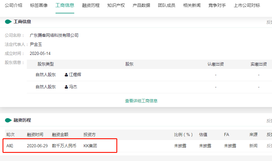 据烯牛数据显示,广东腾客网络科技有限公司(简称腾客公司)是实体零售代运营服务商“K+”的经营主体,而KK集团曾于2020年6月投资“K+”数千万元,“K+”是KK集团投资的项目之一。