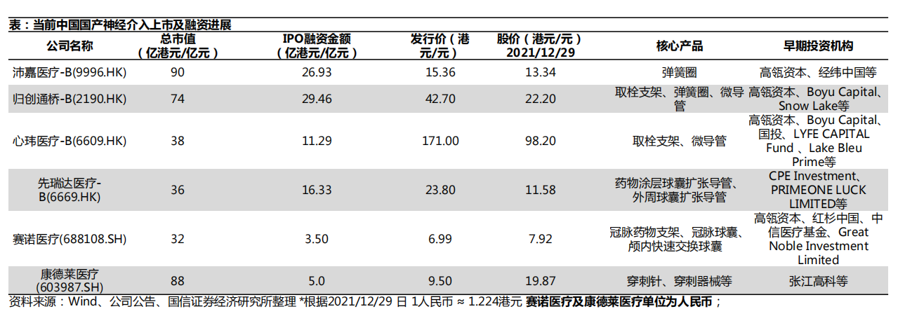 近两年来,神经介入板块已成为资本市场热点。一级市场诞生了许多创新型公司,并受到高瓴、红杉等投资机构的青睐。其中,已有众多国产神经介入公司先后登陆资本市场。目前二级市场已诞生了心玮医疗、沛嘉医疗、归创通桥三家“专精特新”公司。