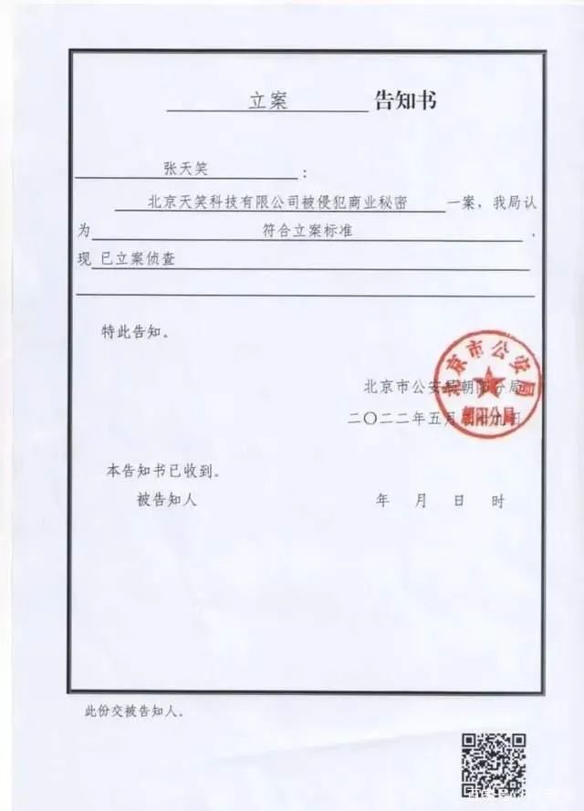 张天笑对《财健道》透露:“我们所有员工都签署了竞业协议”,案件现在属于立案侦查阶段(警方有至多三个月的时间将调查推进到下一个环节),涉案证据不能公开,但他们违反了竞业协议(员工和公司签订了竞业协议,旨在保护公司合法的商业机密),还带走了商业机密。