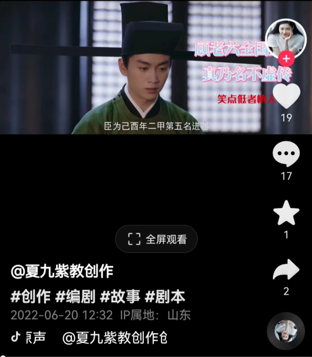 夏九紫则结合自身以及对其他账号的研究后,选定了自己的副业内容赛道——(剧本)创作内容科普。“现在不少人都出来做垂类知识博主副业,成功的话不仅可以实现知识付费变现,还能将自己推到台前打造个人IP,我觉得这也能帮助我未来(创业)事业发展。”