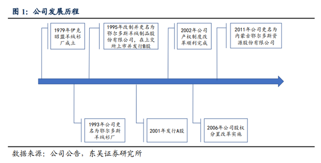 1993年,伊克昭盟羊绒衫厂正式更名为鄂尔多斯羊绒衫厂。此后鄂尔多斯的发展较为顺利。2001年,鄂尔多斯在A股上市,已然是国内最大的羊绒生产企业之一。同年,伊克昭盟更名为鄂尔多斯市,与城市同名的鄂尔多斯来到了自己最高光的时刻。