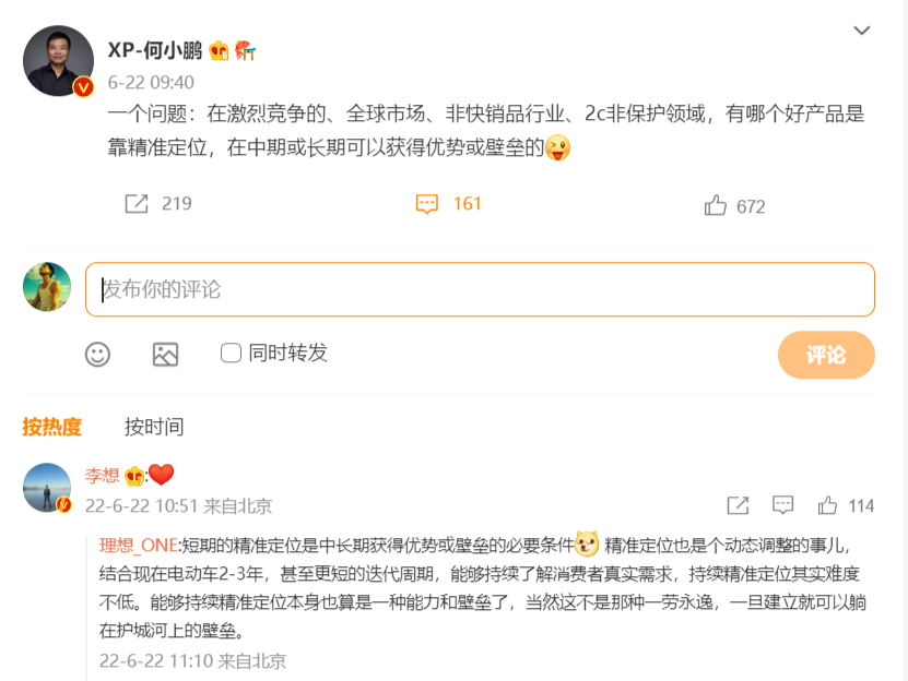 这被部分媒体解读为与李想“互怼”,事后李想回了个"爱心",何小鹏又送上了祝福,两者达成了默契各自给一个台阶下。