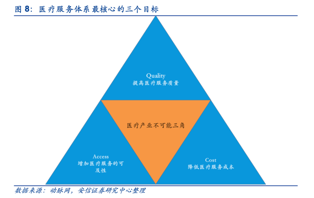 在给定约束条件下,一个国家的医疗系统很难同时兼顾“提高医疗服务质量、增加医疗服务可及性和降低医疗服务的价格”。