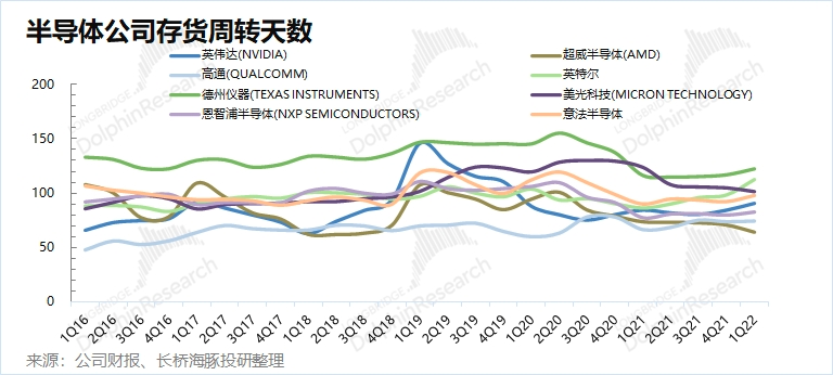 从全球主要半导体公司的存货情况看,呈现结构化的特征,其中有部分公司的存货周转天数已经开始出现回升迹象。