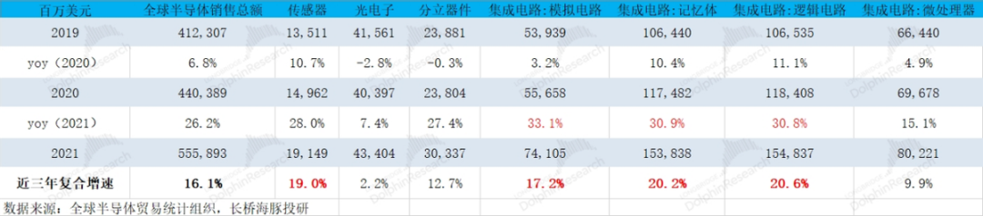 那么本轮半导体销售额的上行,主要是哪些芯片带动的呢?