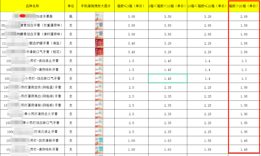 从一位牙膏代工企业给市界的报价单来看,牙膏行业属实是一门”暴利生意”。批发20箱的单只牙膏的价格不超过3元钱,但是建议的零售价涨幅却超过400%,在15.9元-29.9元之间。”而这些所谓的酵素、小苏打“网红牙膏”,成本则大概在一块钱左右。