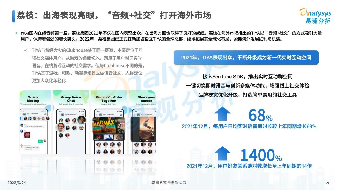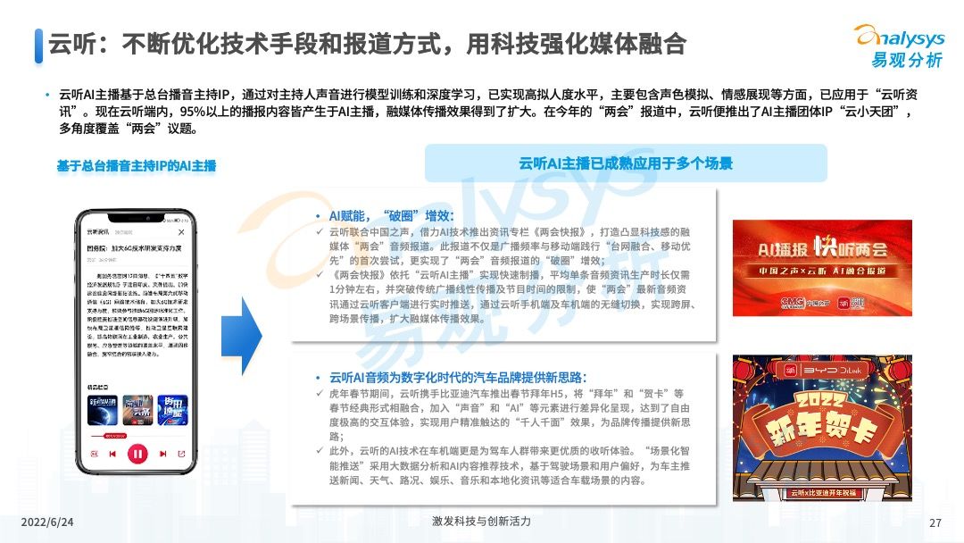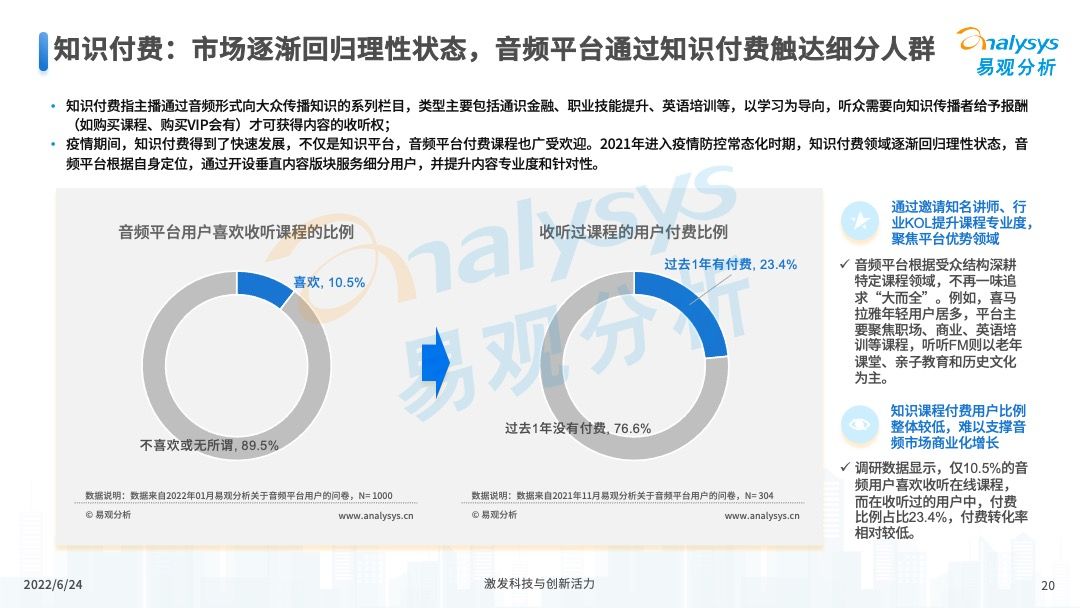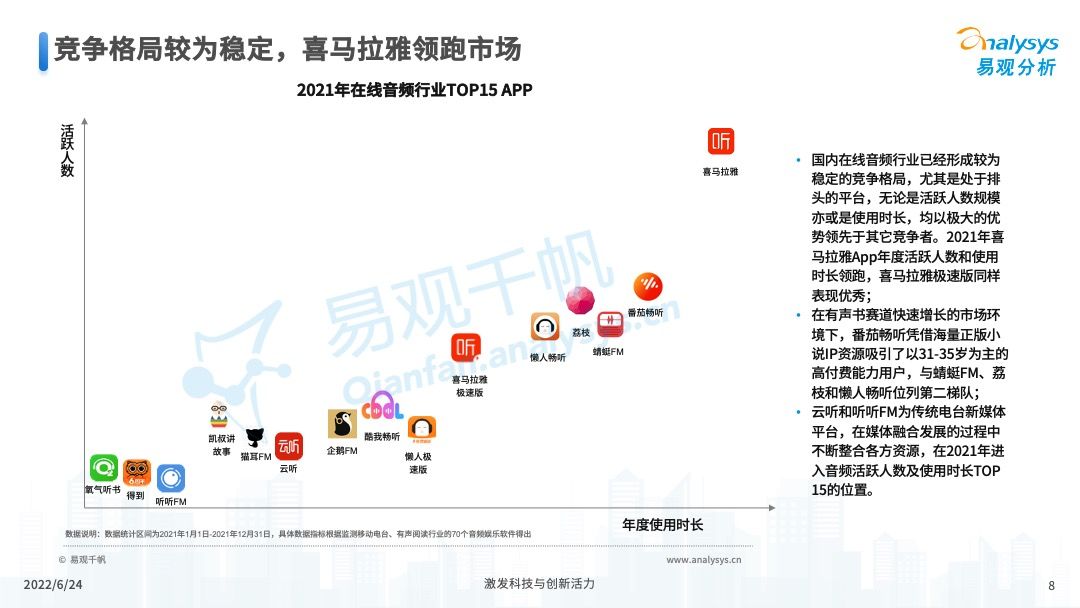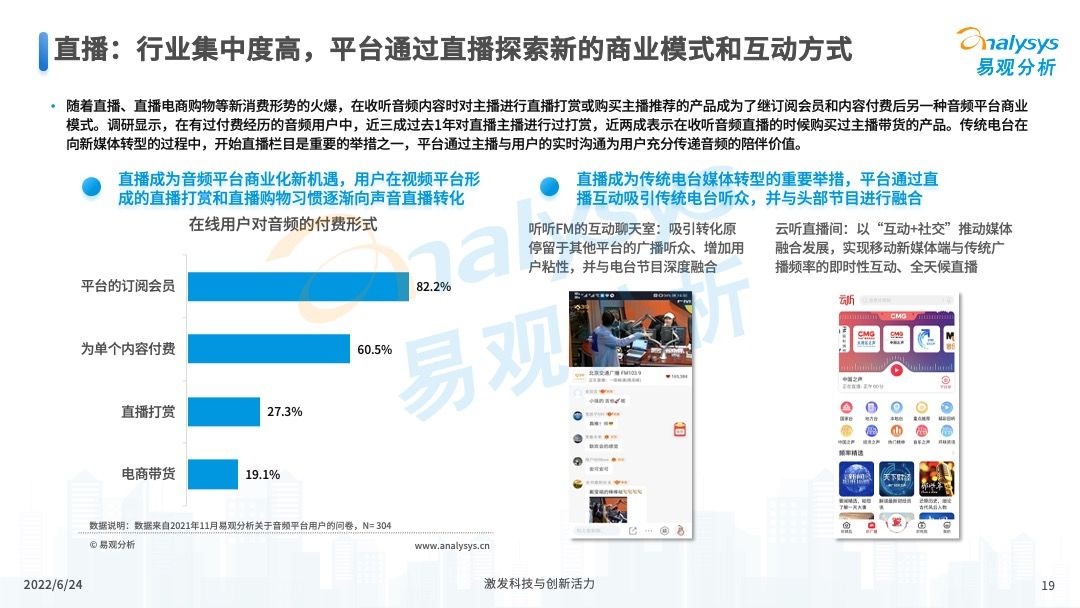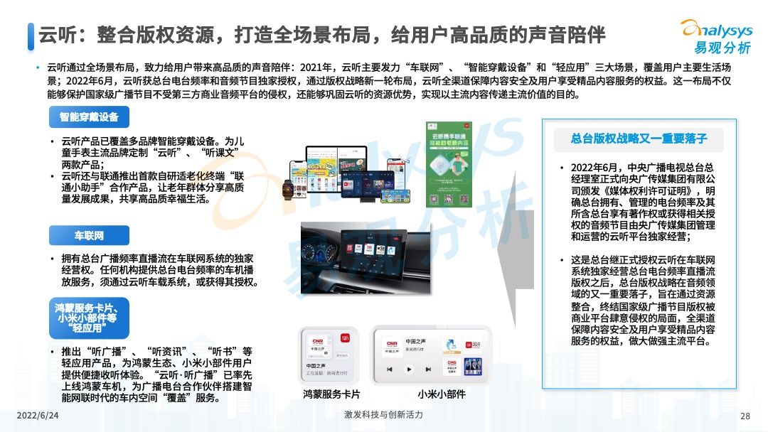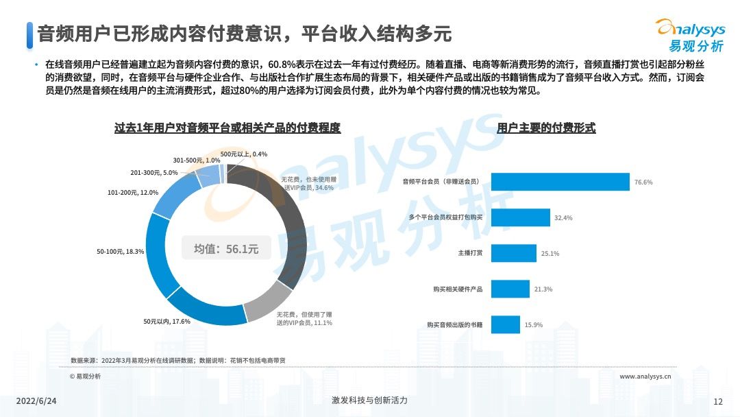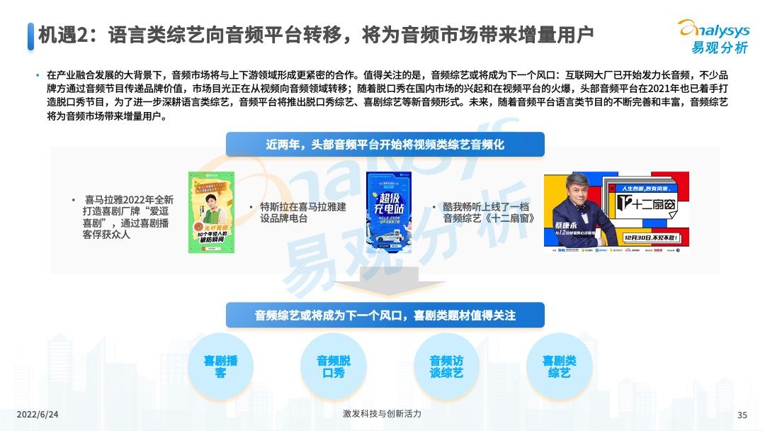 图片来源@视觉中国文|易观分析我国在线音频市场规模持续增长,预计2022年将超过500亿元。2021年,平台通过加码直播、播客、有声剧和跨界合作等方式丰富商业场景,音频在车载场景中的渗透继续加深,“反向出版”模式带动音频平台成为IP策源地,与音频平台跨界合作和定制播客成为品牌主热衷的营销方式。