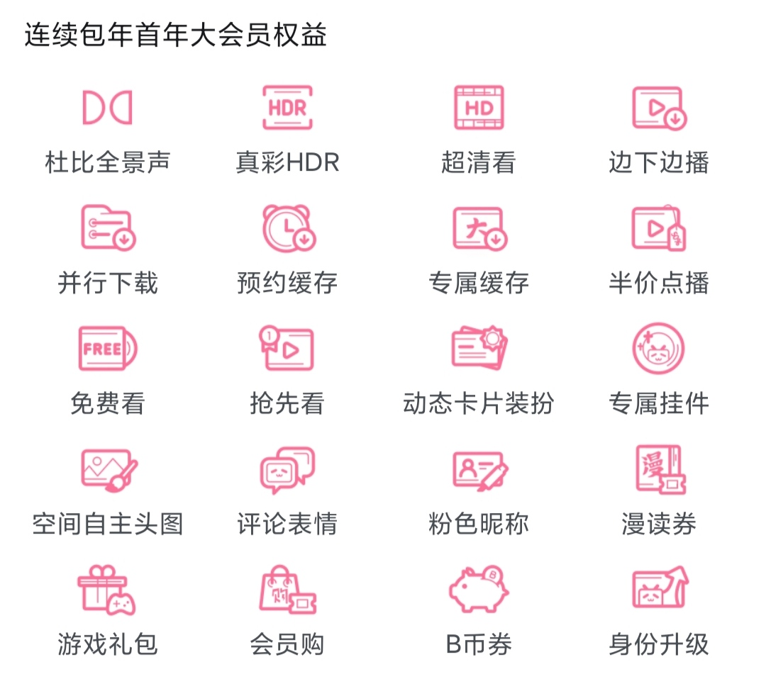 B站展示的大会员权益