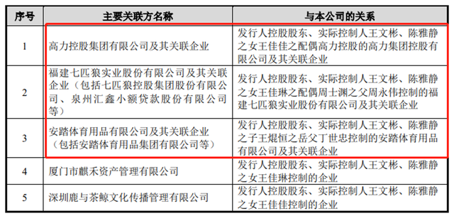 正如招股书所披露,王文彬的儿子王焜恒娶了安踏实控人丁世忠的女儿丁斯晴;女儿王佳琳嫁给了了七匹狼实控人周永伟的儿子周士渊;女儿王佳佳嫁给了高力控股集团董事长高仕军之子高力。