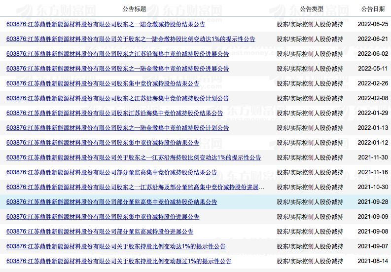与资本市场的热情不同,鼎胜新材多名股东和董监高开始了轮番减持。仅2021年5月以来,公司即发布减持及股东权益变动类公告多达三十余次。