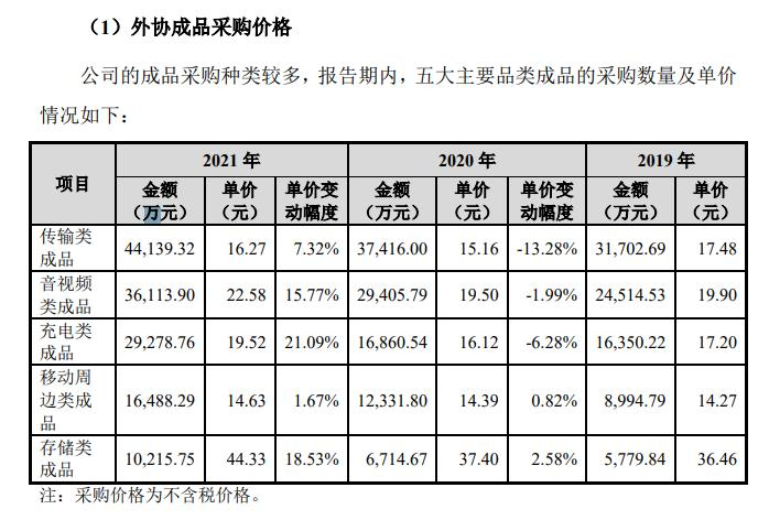 以2021 年为例,成品采购的单价最高涨了 21.09%,平均涨了 3 块多。再加上芯片等零部件采购的价格上涨,才导致绿联陷入利润困局。