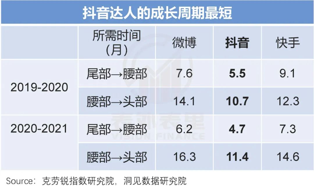 如下图,相比其他平台,抖音的头部流动性较强,新人出头成为腰部,甚至头部达人的几率最大。