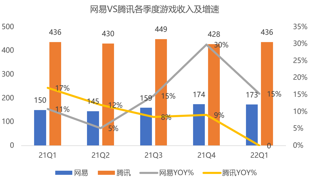 2022年Q1,网易游戏业务超预期,在线游戏收入172.7亿元,同比增长15.3%。