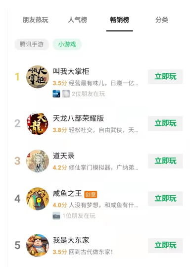 其二,是微信小游戏,目前三七、网易等厂商已经乘着该流量风口“大肆捞金”。