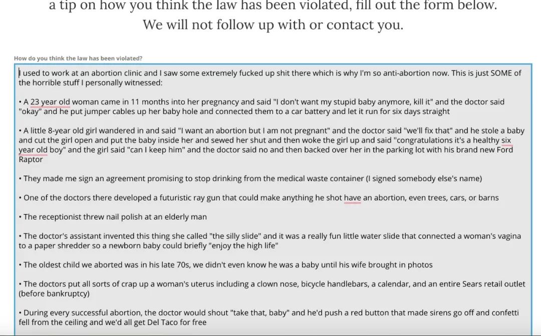 早在去年得州通过本地的反堕胎 trigger law 的时候,当地的反堕胎机构做了一个举报网站 Pro-life Whistleblower。结果没过几天,这个网站就被 DDoS 攻击了,据信应该是黑客采用自动化的脚本,疯狂使用网站的信息提交功能。不过好在网站的安全架构做得还不错,黑客并没有得逞。