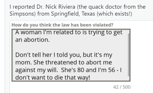 比如下面这个,举报了春田镇的 Nick Rivera 医生,给自己亲妈做堕胎手术要堕掉自己: