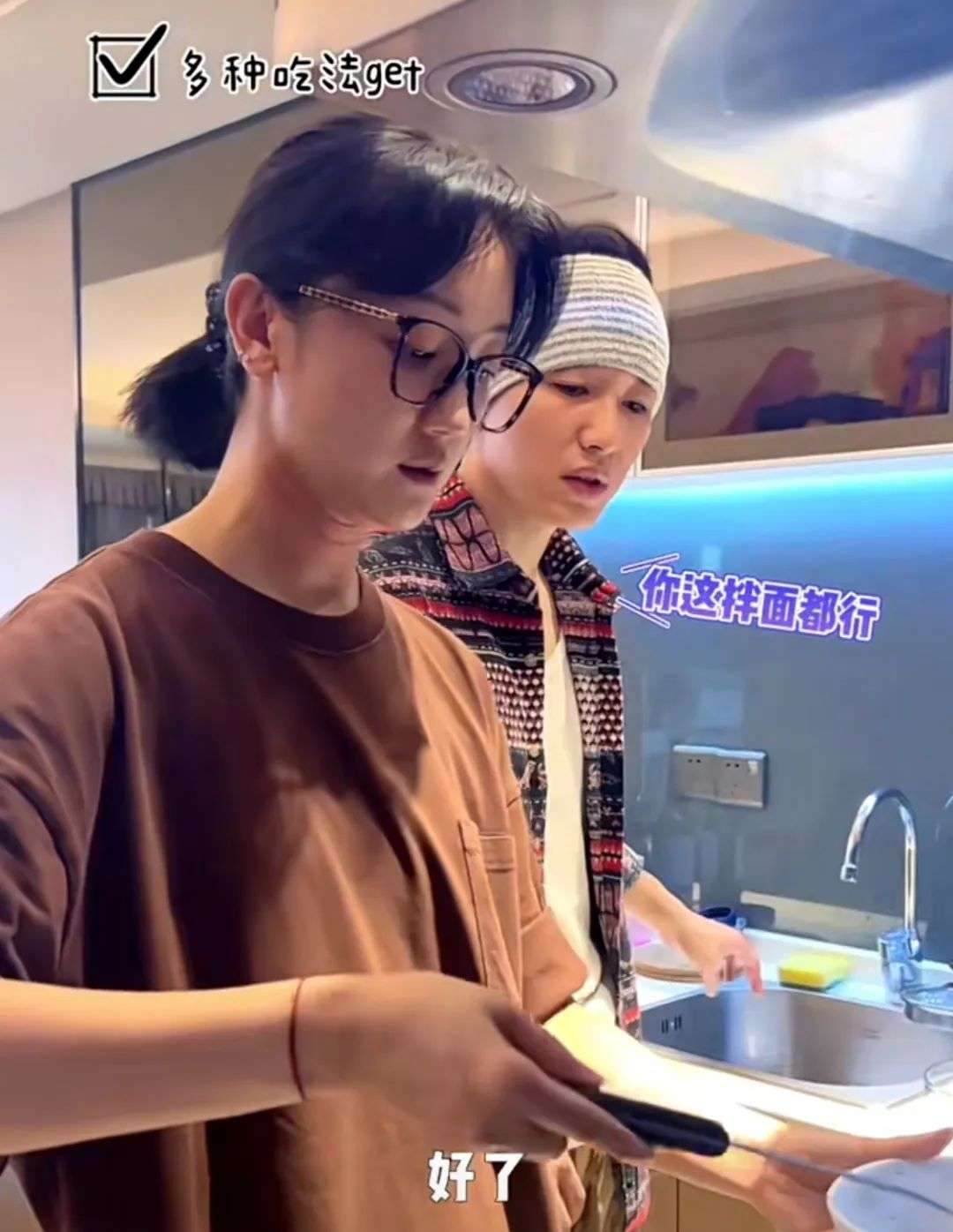 于是奇妙的情景出现了:在电视剧里刚求婚刘亦菲成功的“池衙内”和情感专家“齐妙”,一起分享做意式肉酱的有趣场面。