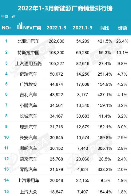 在一季度中,蔚来的销量为25768辆,平均每月已经跌破1万辆,仅为8590辆。28.5%的销量增幅,在排名前15的车企中仅高过上汽乘用车、长城汽车和上汽通用五菱,而同期小鹏的增幅为159.1%,理想为152.1%,而另外两家迅速崛起的新能源车企哪吒和零跑销量增幅分别为305.1%和338.2%,对比蔚来一季度销量28.5%的增速,其他竞争对手均大步向前,只有蔚来在“龟速”发展,蔚来由原先新能源一哥逐渐开始掉队,颓势明显,其销量已不足榜首比亚迪的十分之一。