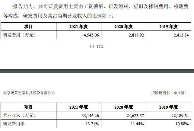 究其根本,这可能与茂莱光学研发水平、研发投入有关。