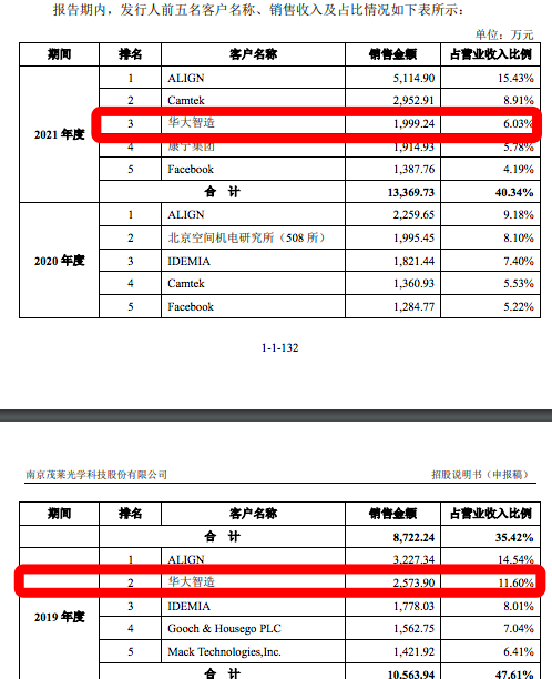 更值得关注的是,茂莱光学在信息披露方面还出现了与大客户数据“打架”的问题。