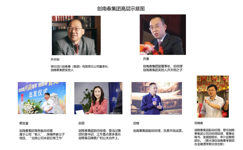 具体而言,赵君是新班子中唯一的女生,公开信息显示,她当过集团纪委书记,目前工作重点在剑南春品牌推广和公关合作上,曾代表公司参加在越南岘港举办的2017“APEC中国之夜”。田锋看上去是负责市场运营,邓晓春是银行系统出身,做过集团公司总经理助理、董秘,曾任华西证券(002926)董事。