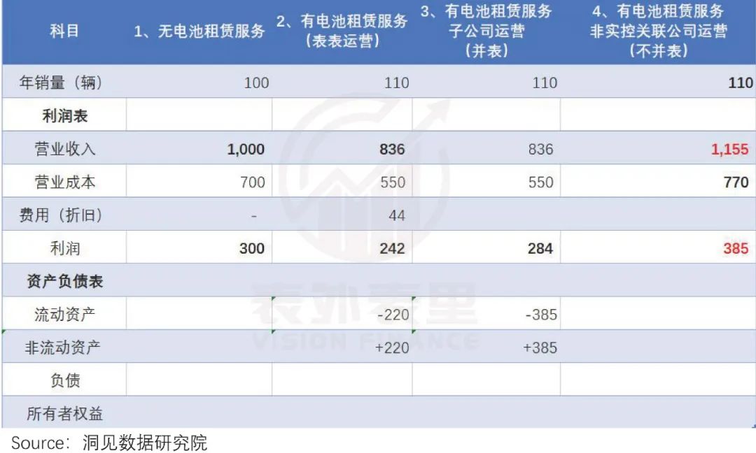 之所以会如此,在于电池改卖为租后,租金是按月支付,每月500元,5年还清。因此,表外表里这一年只能收到当年的租金:66万元。