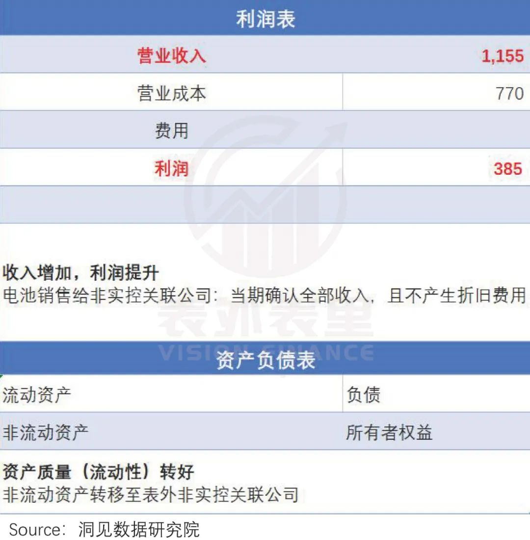 既然问题出在并表,那干脆就把电池卖给非实际控制关联公司,这样就不需要并表了,并且这也是上市公司常用的处理技巧。