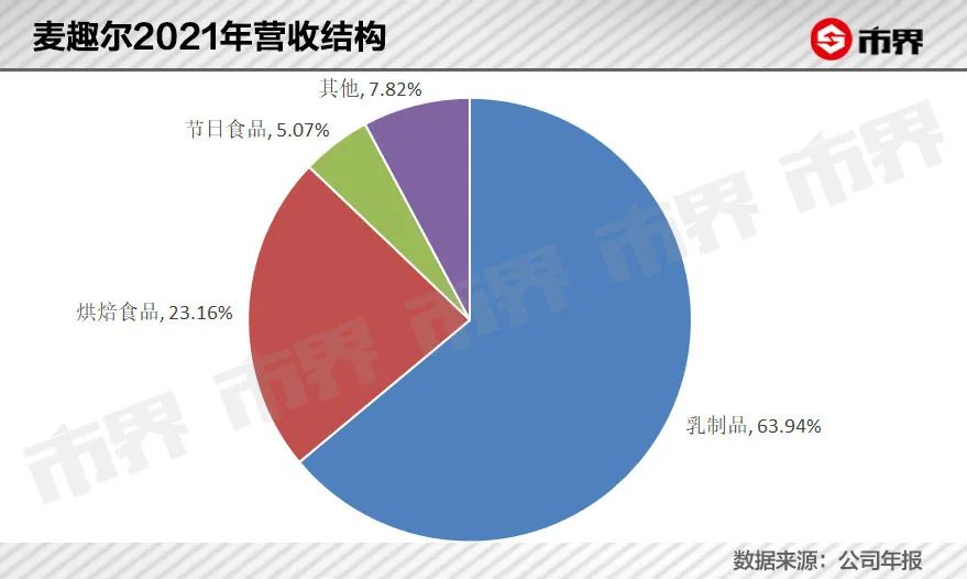 这一年,乳制品业务的营收占比从上年的65.06%下滑到45.17%,烘焙食品、节日食品营收占比合计达到了52.49%。